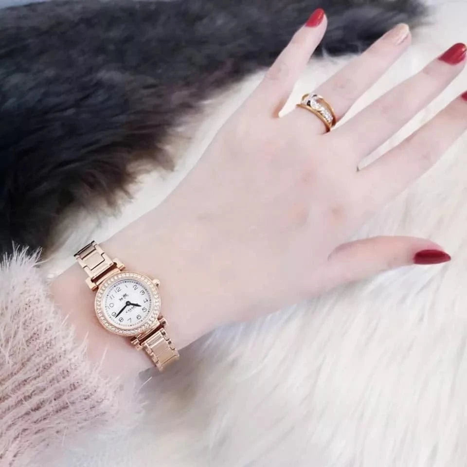 Coach Madison Crystals White Dial Rose Gold Steel Strap Watch For Women - 14502405