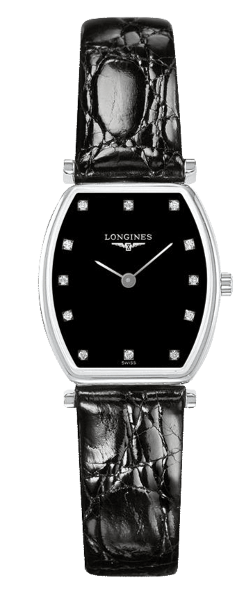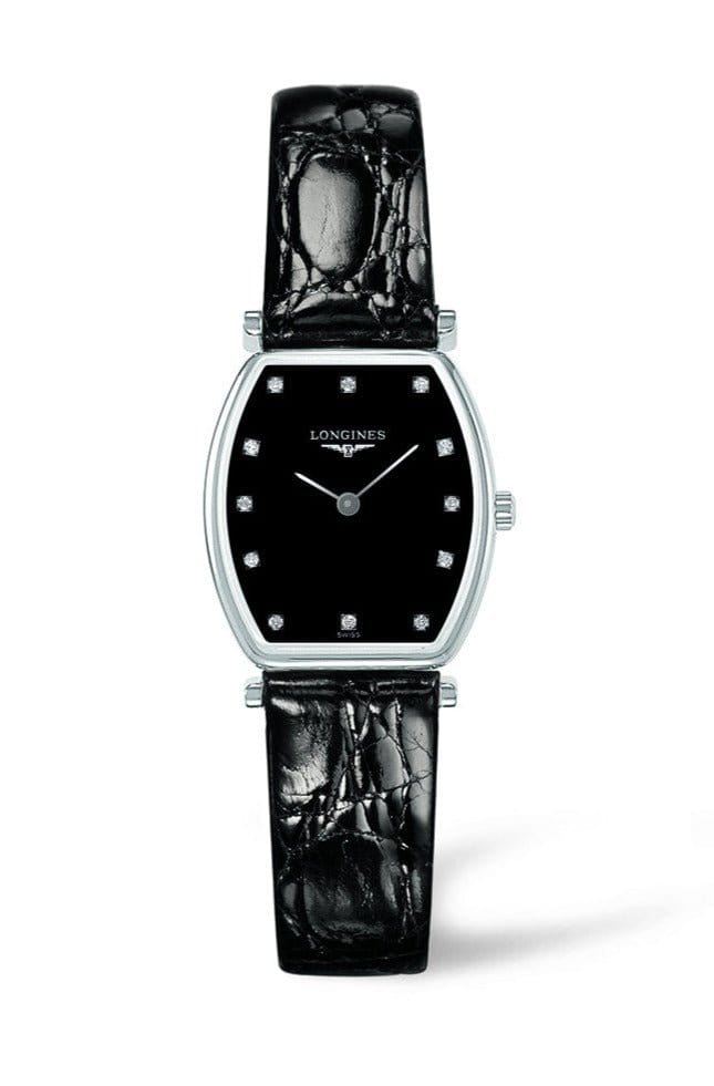 Longines La Grande Classique de Longines Tonneau Black Dial Black Leather Strap Watch for Women - L4.205.4.58.2