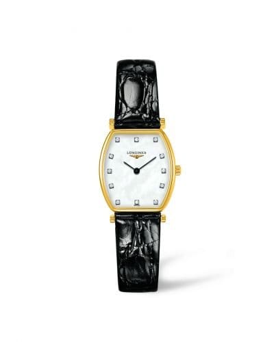 Longines La Grande Classique de Longines Tonneau White Dial Black Leather Strap Watch for Women - L4.205.2.87.2