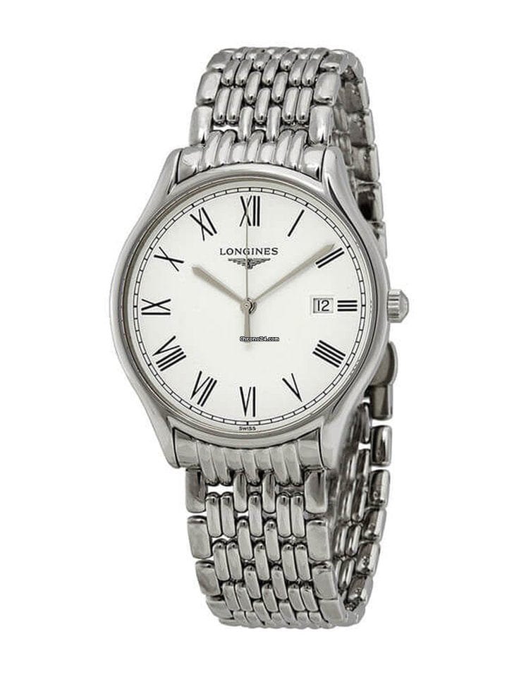 White dial enhanced by silver-tone hands. Silver-tone stainless steel case with a silver-tone stainless steel band. Quartz movement. 30 meters / 100 feet water resistance. Fixed bezel. Scratch Resistant Sapphire crystal. Solid caseback. Hidden Fold Over clasp. Pull / Push crown. Case size 25 mm x 8 mm. Band 13 mm x long. Longines L4.259.4.11.6 Lyre Watch.