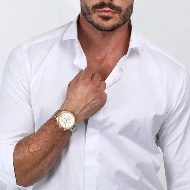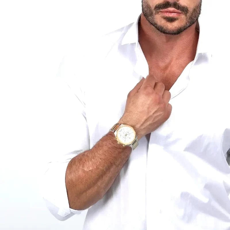Elevate your style with the Maserati Stile Chronograph Watch for men! With a sleek white dial and two tone steel strap, this watch exudes luxury and sophistication. The chronograph feature allows for precise timekeeping, perfect for busy professionals. Make a statement with every outfit.