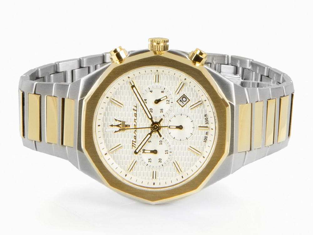 Maserati Stile Chronograph White Dial Two Tone Steel Strap Watch For Men - R8873642009