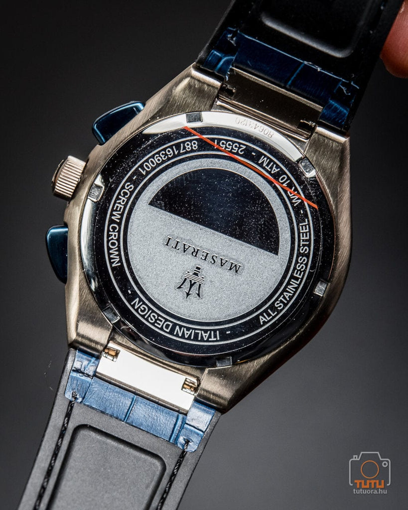 Miyota Caliber JS25 quartz movement. Scratch resistant mineral crystal. Pull / push crown. Solid case back. Round case shape, case size: 43 mm, case thickness: 9 mm. Band width: 24 mm. Tang clasp. Water resistant at 100 meters / 330 feet. Functions: chronograph, date, hour, minute, second. Casual watch style. Watch label: Japan Movt. Maserati Triconic Chronograph Quartz White Dial Men's Watch R8871639001.