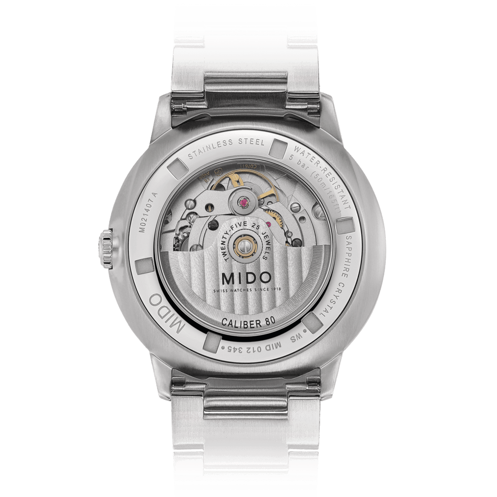 Mido Caliber 80 (ETA C07.661 base) with 80 hours power reserve |