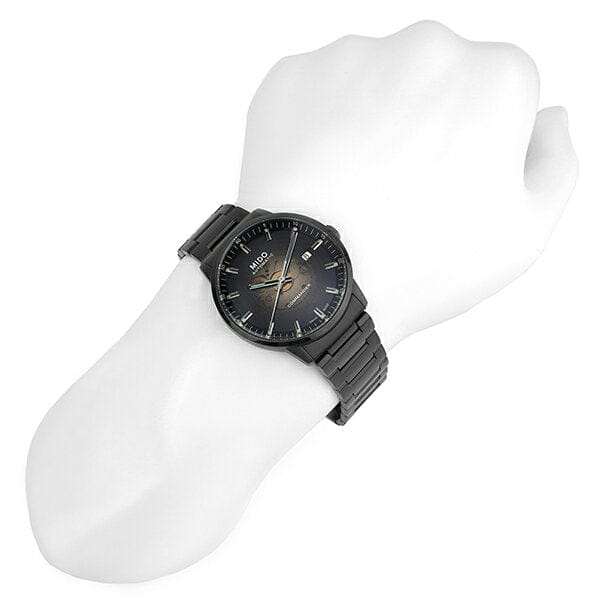 This remarkable timepiece comes on a multi-finished stainless steel bracelet with anthracite PVD coating which extends seamlessly from its case that is made from the same material, allowing it to form a single perfect timepiece that ensures comfortable wear while withstanding the harshest conditions. This metal bracelet is also fitted with a Mido signed clasp which shows off a matching anthracite PVD treatment.