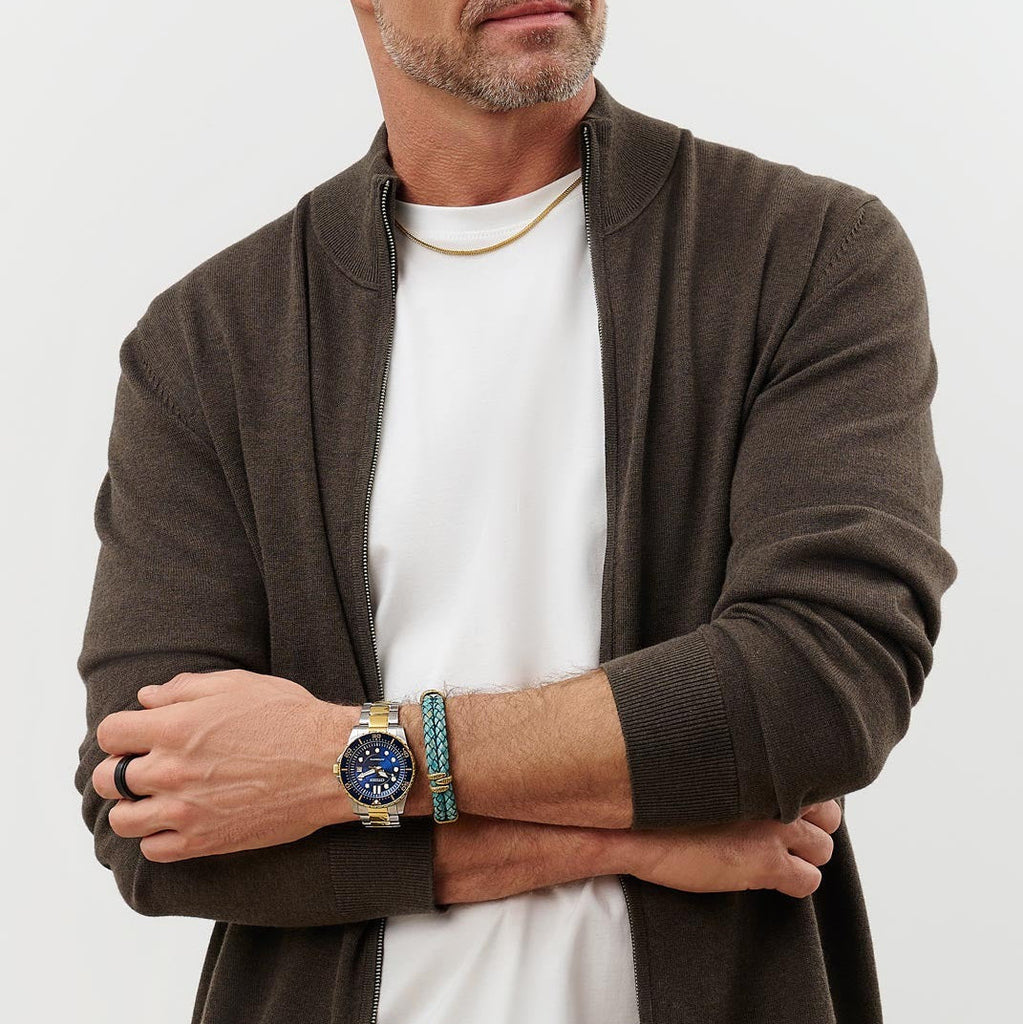 Citizen Automatic Men's Automatic Watch (NJ0174-82L) Soar to new heights with this modernized timepiece from our Mechanical Collection. Its modern and contemporary design reflects great craftsmanship and enduring quality. Its sleek aqua blue dial, Date, stainless steel case and bracelet complement its pure and appealing aesthetic