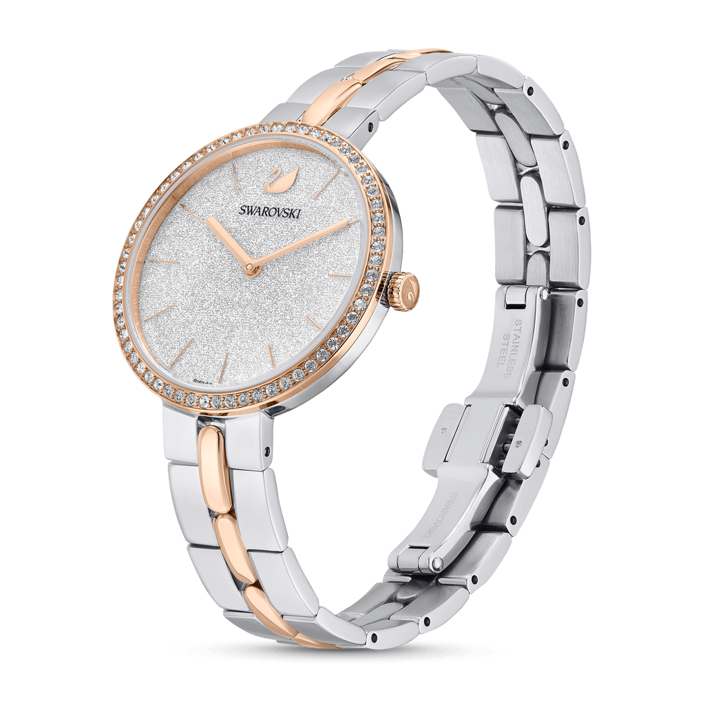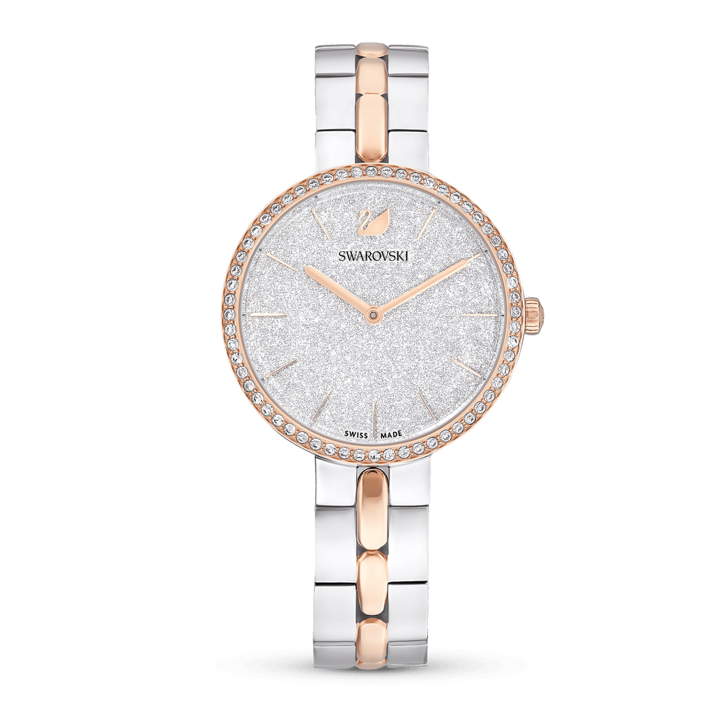 - Bold and Stylish: Keep it chic with this Swiss-made Cosmopolitan watch. Embellished with clear pavé crystals, this glimmering timepiece has an elegant rose gold-tone finish, and a stainless steel case with an adjustable bracelet. Wear it day and night for a subtle touch of glamour.