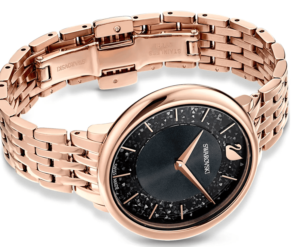 Swarovski Crystalline Chic Analog Black Dial Rose Gold Steel Strap Watch for Women - 5544587
