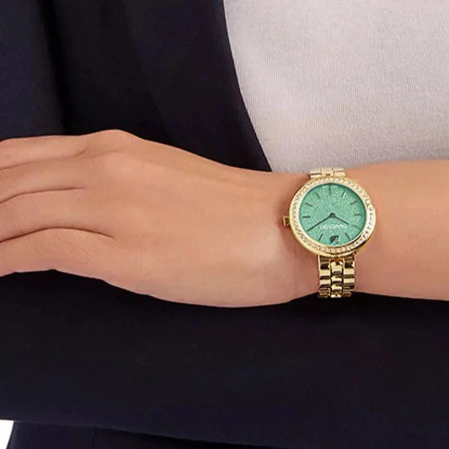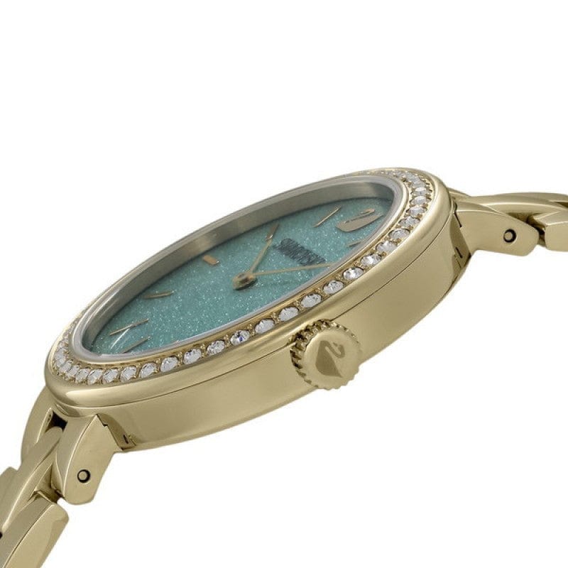 Swarovski Daytime Crystals Turquoise Dial Gold Steel Strap Watch for Women - 5182212