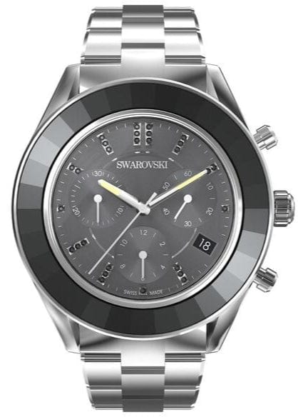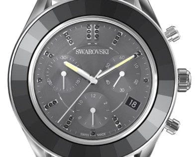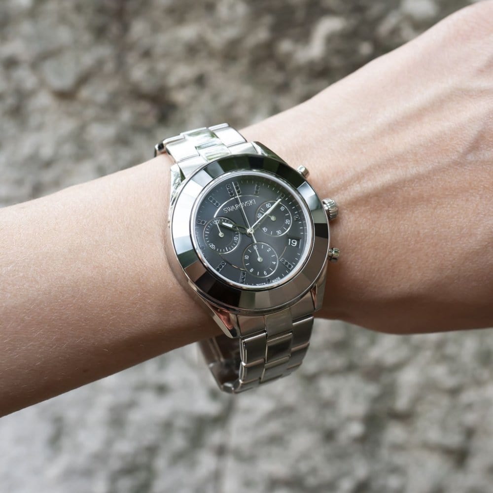 The perfect balance between tradition and innovation, the Octea Lux Sport 39mm is a modern and luxurious watch. Crafted in stainless steel, it features a stylish black sunray dial with crystal indexes, three dials and a date window. The ultra-chic black crystal bezel, exclusive to the line, and a three-link metal bracelet complete this distinctive design. The watch is water resistant to 50m and is Swiss made.Women's chronograph watch from Swarovski from the octea lux sport collection. Octea lux sport watch, metal bracelet, black, stainless steel case size: 39 mm, watch strap length: 16. 5 cm. Octea lux sport 39 mm is a modern and luxurious watch, the perfect synthesis of innovation and tradition. Made of stainless steel, it features an elegant black dial with a sunray pattern, crystal indexes, three counters and a date window. The ultra-chic black crystal bezel, made exclusively for this line, together with a three-link metal bracelet complete the extraordinary design. The swiss made watch is water resistant up to 50 m.