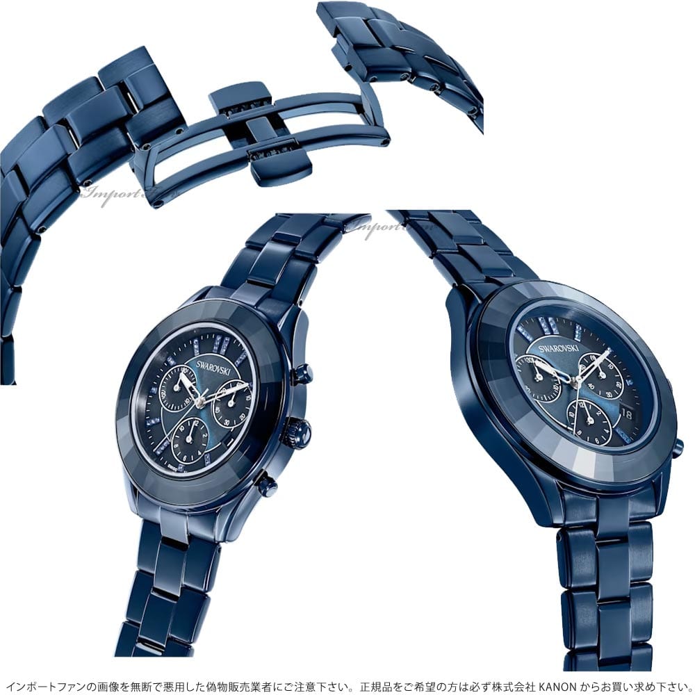 - Items delivered: (1) Swarovski Octea Lux Sport watch with sunray dial, blue crystal bezel, stainless steel casing, on three-link metal band, water-resistant design, complete with Swarovski watch box