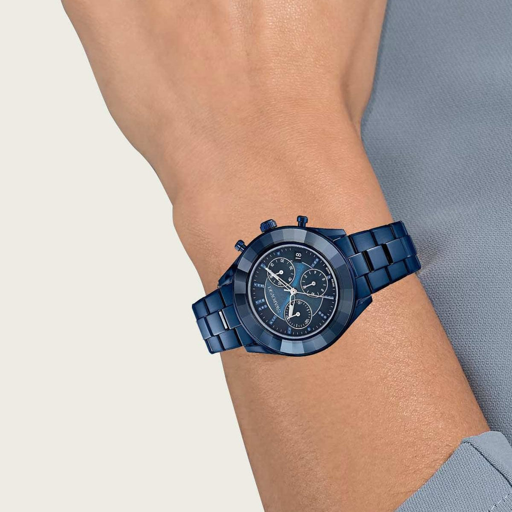 Swarovski Octea Lux Sport Chronograph Blue Dial Blue Steel Strap Watch for Women - 5610475