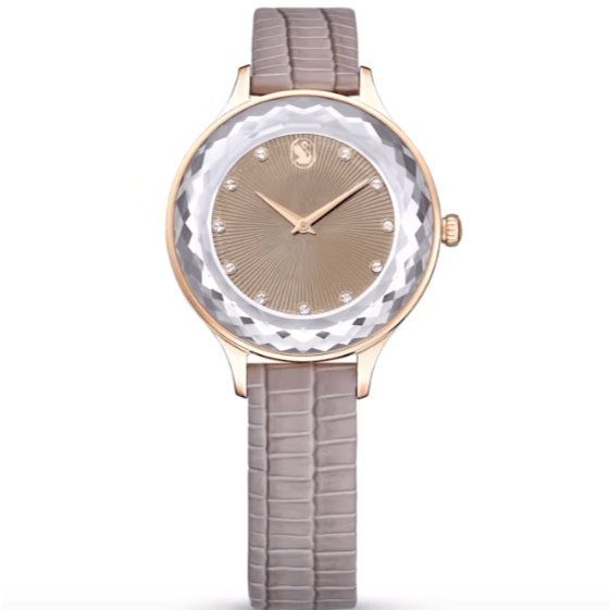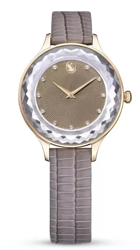 Swarovski Octea Nova Beige Dial Grey Leather Strap Watch for Women - 5649999