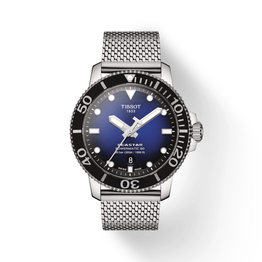Tissot Seastar 1000 Powermatic 80 Blue Dial SIlver Mesh Bracelet Watch For Men - T120.407.11.041.02