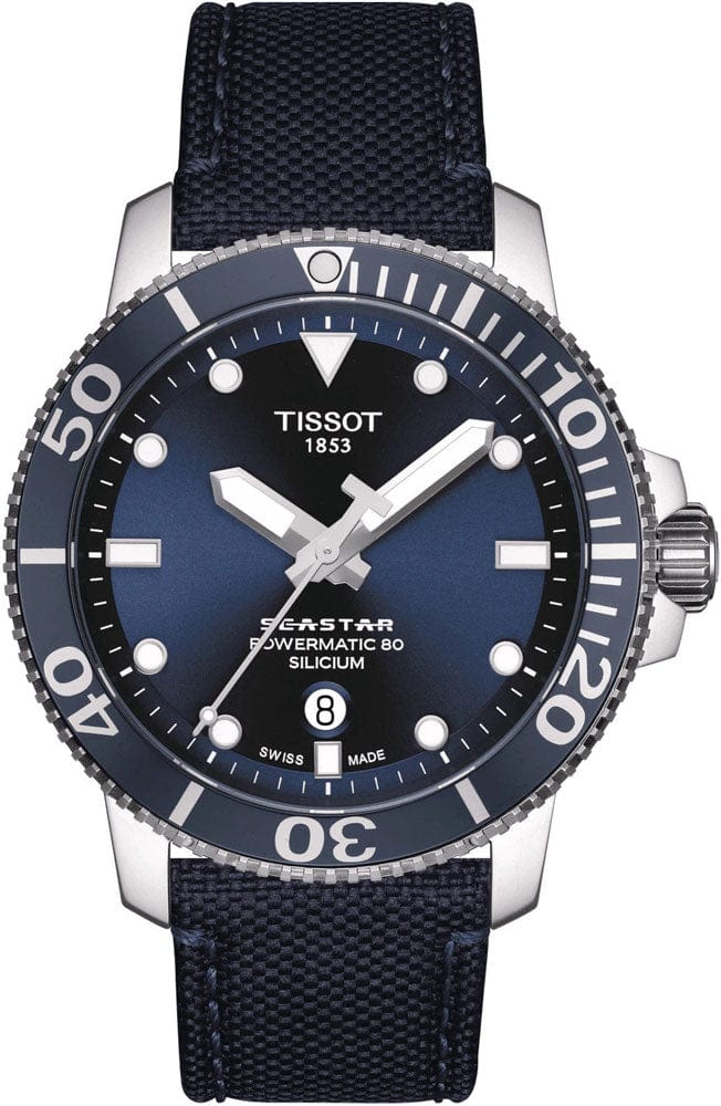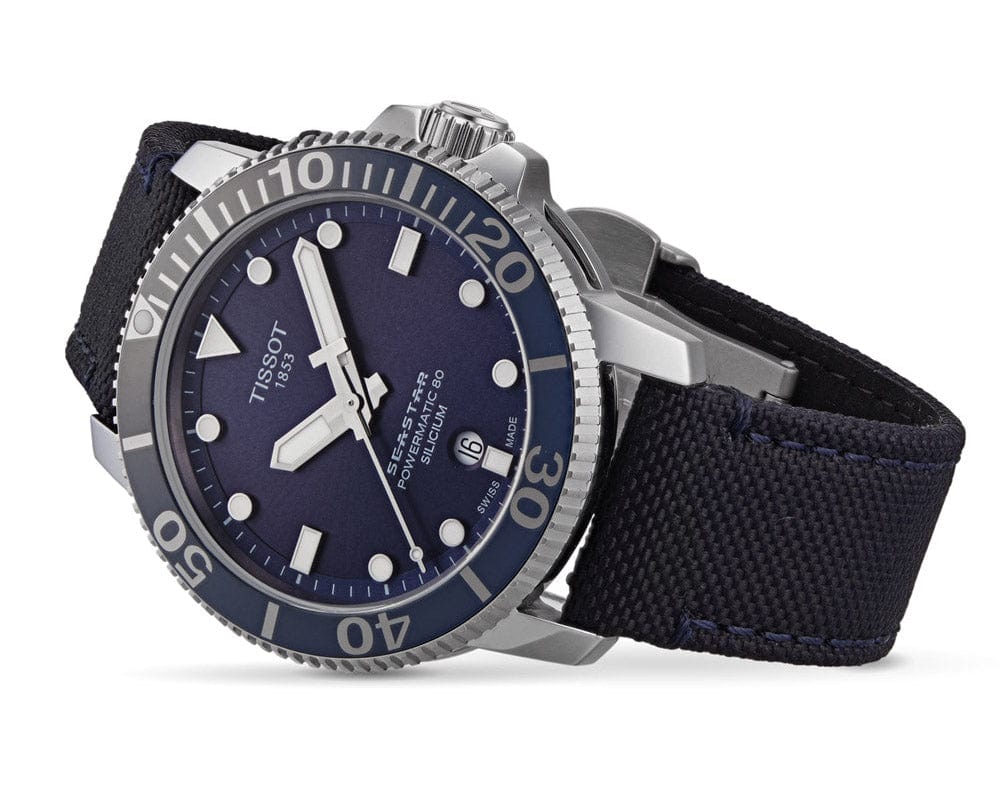 Tissot Seastar 1000 Powermatic 80 Silicium Blue Dial Blue Nylon Strap Watch For Men - T120.407.17.041.01
