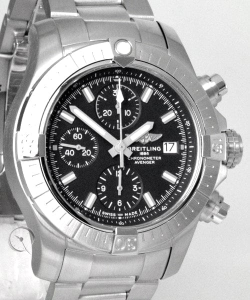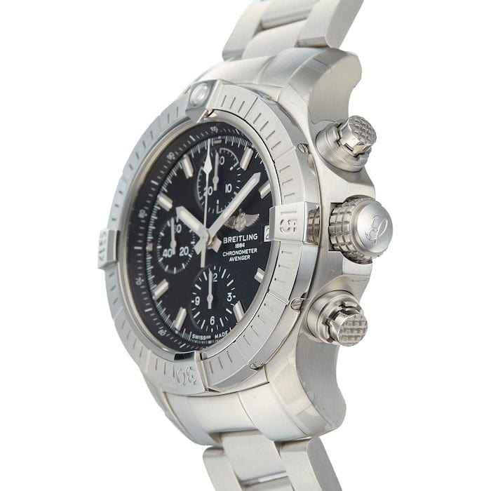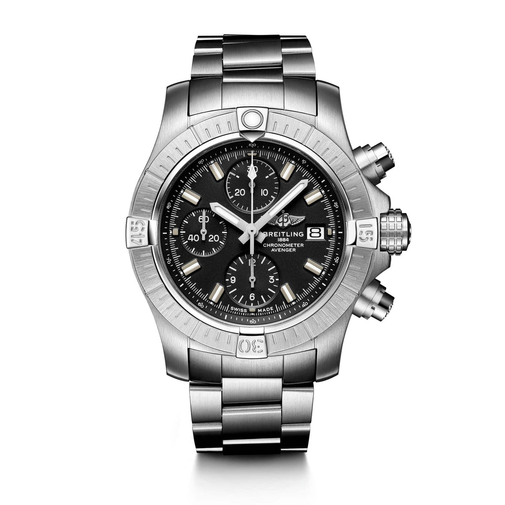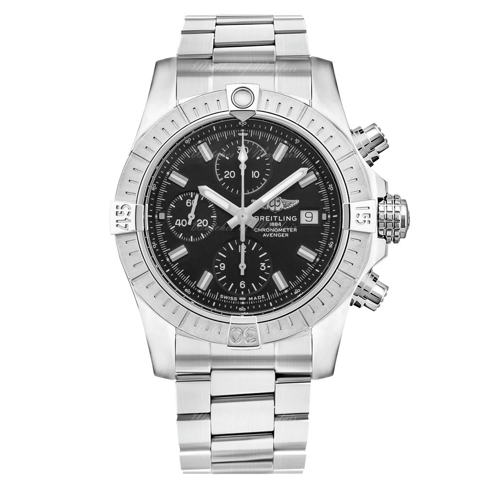 Breitling Avenger Chronograph 43 Black Dial Silver Steel Strap Watch for Men - A13385101B1A1