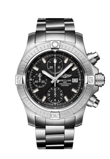Bold, extremely robust and shock resistant, the Avenger Chronograph 43 is the most versatile and compact Avenger chronograph. As a true Breitling Avenger, it can be used wearing gloves and offers unrivalled safety and reliability to any airborne adventurer. The Avenger Chronograph 43 features a sturdy 43mm stainless-steel case, black or blue dial and a choice of a stainless-steel bracelet, or matching black or blue military leather strap that fits either a stainless-steel pin buckle or folding clasp. Thanks to its rugged bezel and its special grip-pattern on the crown & chronograph pushers, the Avenger Chronograph 43 can be easily operated wearing gloves.