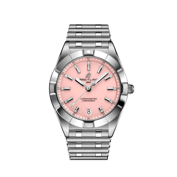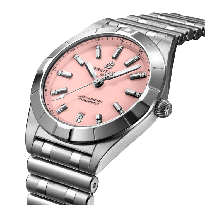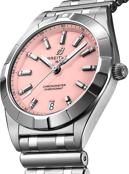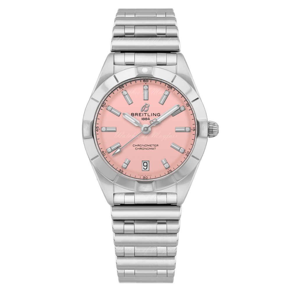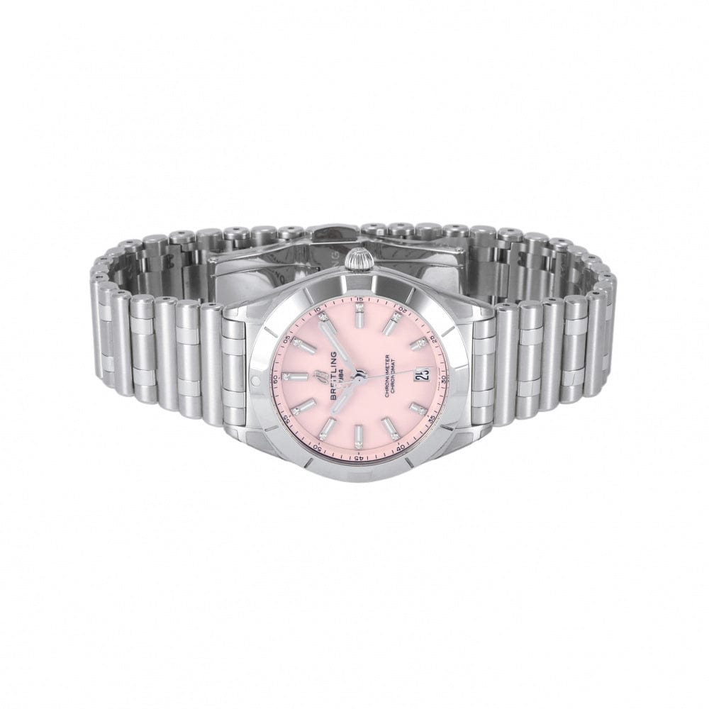 Breitling Chronomat 32 Diamonds Pink Dial Silver Steel Strap Watch for Women - A77310101K1A1