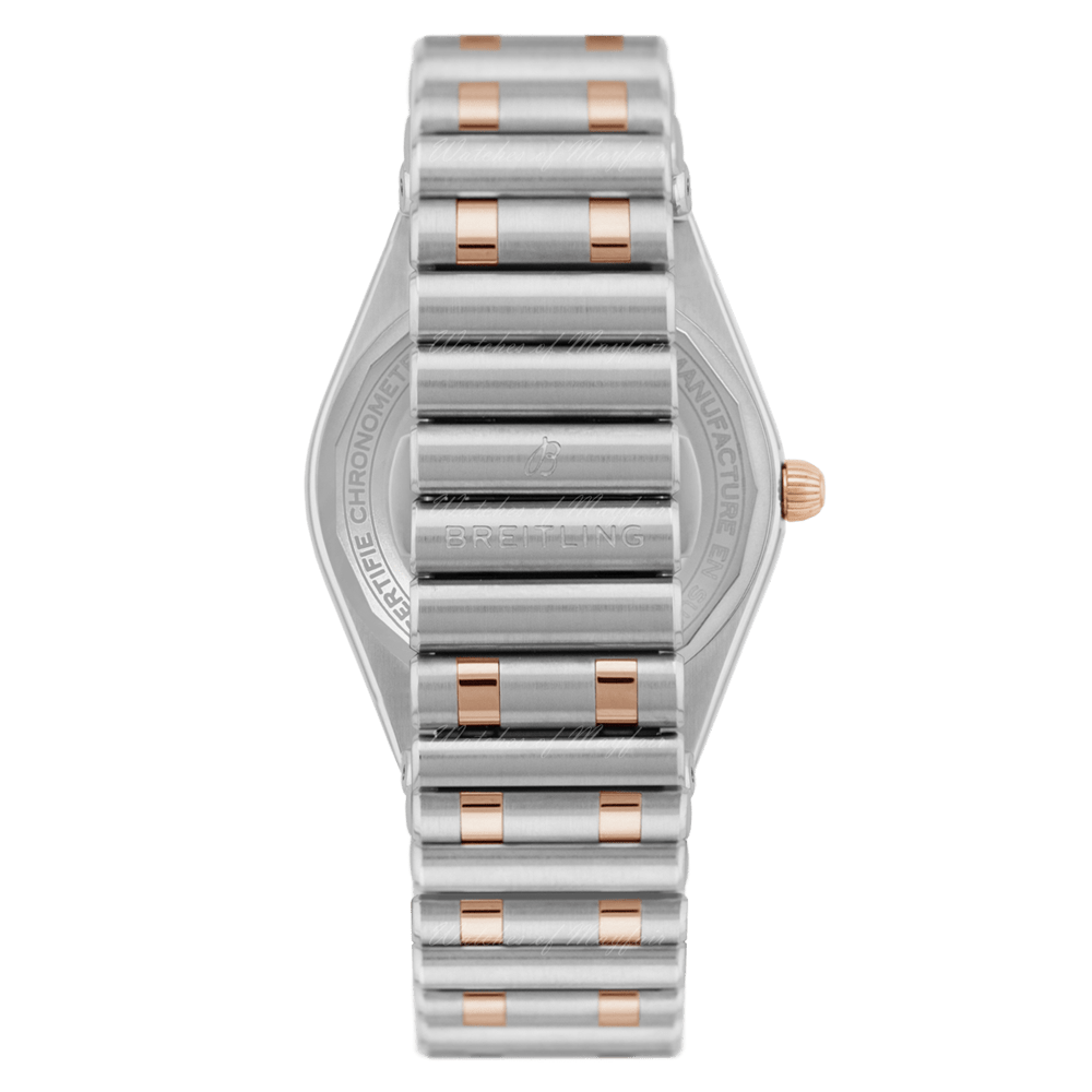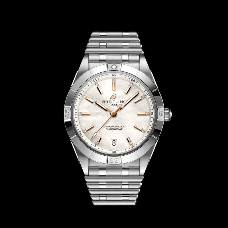 Stylish yet elegant, the modern-retro inspired Chronomat Automatic 36 is the versatile sporty and chic watch for any occasion. It is available in an array of metal cases, from cool stainless steel, to goes-with-everything bicolor, or even luxurious 18k red gold. Women craving extra sparkle will also be able to opt for diamond-set bezels, indices, and colorful dials. Featuring Breitling’s iconic and comfortable “Rouleaux” bracelet with a butterfly clasp, the Chronomat Automatic 36 is powered by the Breitling Caliber 10, a COSC-certified chronometer.