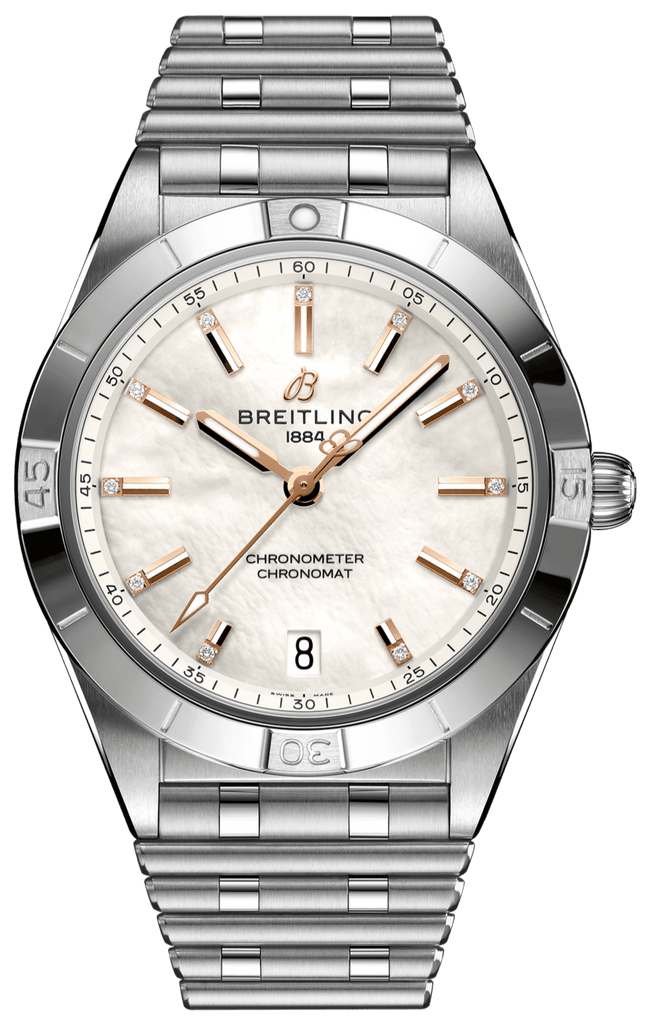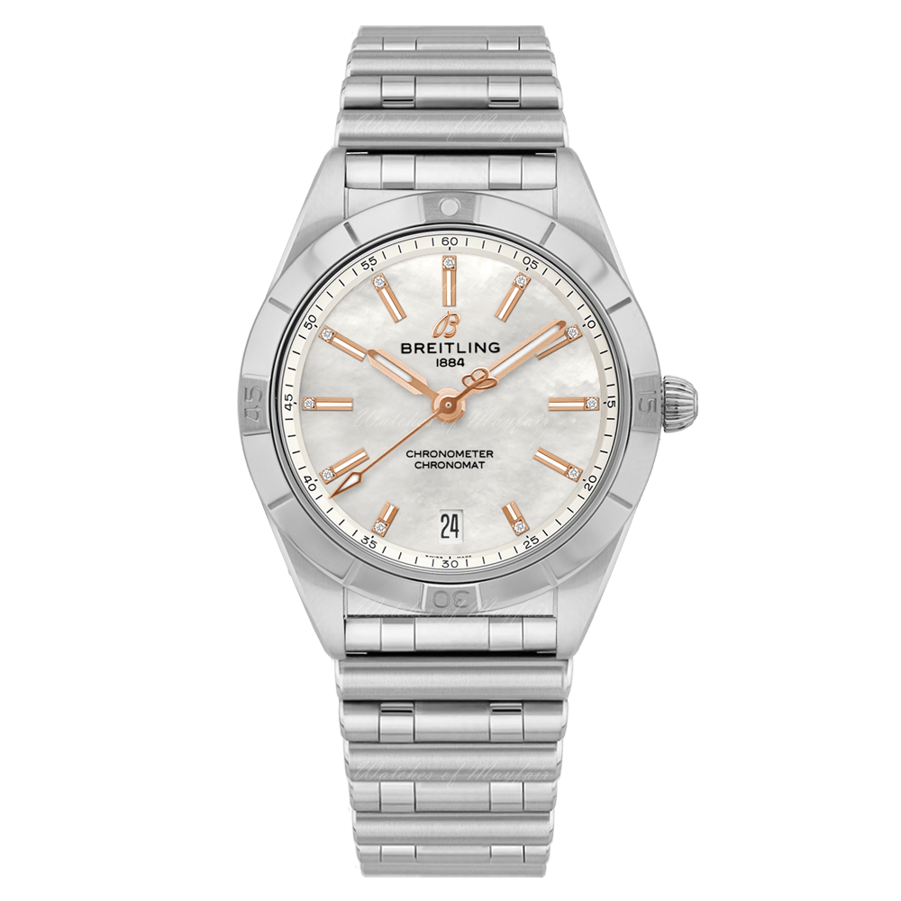 Breitling Chronomat 36 Mother of Pearl Dial Silver Steel Strap Watch for Women - A10380101A4A1