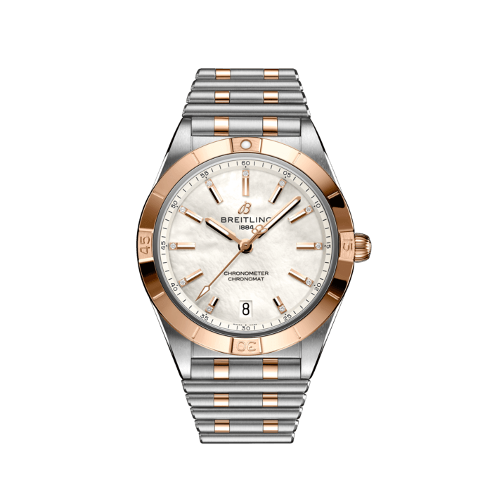 Stylish yet elegant, the modern-retro inspired Chronomat Automatic 36 is the versatile sporty and chic watch for any occasion. It is available in an array of metal cases, from cool stainless steel, to goes-with-everything bicolor, or even luxurious 18k red gold. Women craving extra sparkle will also be able to opt for diamond-set bezels, indices, and colorful dials. Featuring Breitling’s iconic and comfortable “Rouleaux” bracelet with a butterfly clasp, the Chronomat Automatic 36 is powered by the Breitling Caliber 10, a COSC-certified chronometer.