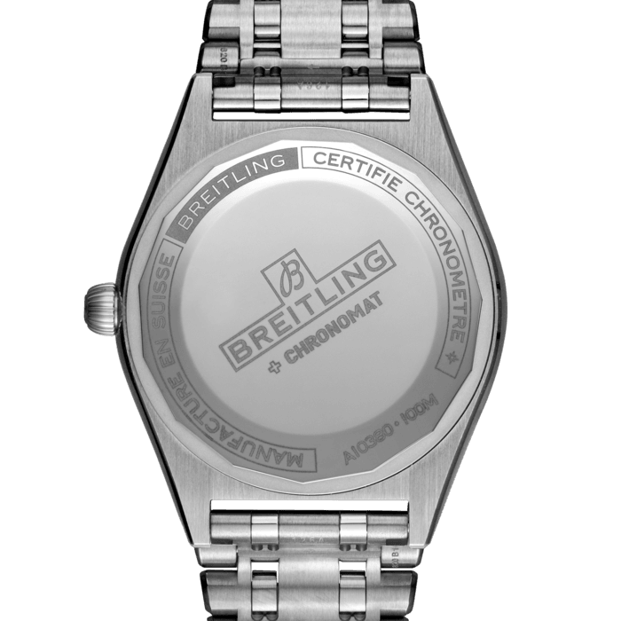 Stylish yet elegant, the modern-retro inspired Chronomat Automatic 36 is the versatile sporty and chic watch for any occasion. It is available in an array of metal cases, from cool stainless steel, to goes-with-everything bicolor, or even luxurious 18k red gold. Women craving extra sparkle will also be able to opt for diamond-set bezels, indices, and colorful dials. Featuring Breitling’s iconic and comfortable “Rouleaux” bracelet with a butterfly clasp, the Chronomat Automatic 36 is powered by the Breitling Caliber 10, a COSC-certified chronometer.