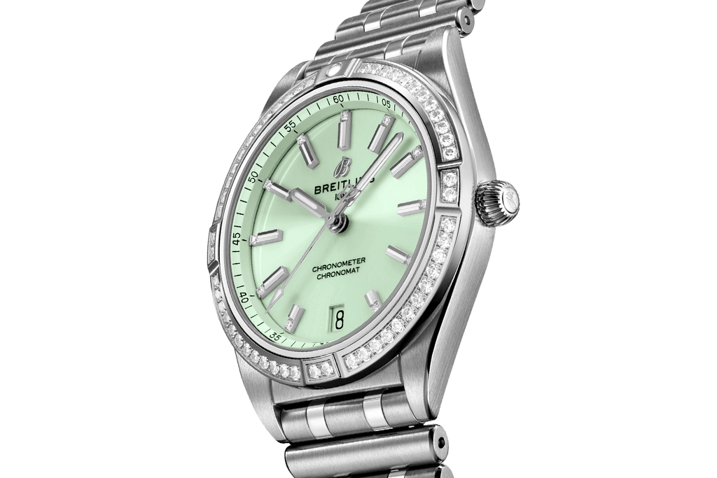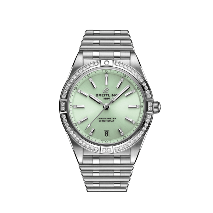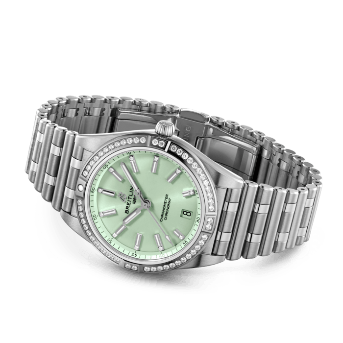 Stylish yet elegant, the modern-retro inspired Chronomat Automatic 36 is the versatile sporty and chic watch for any occasion. It is available in an array of metal cases, from cool stainless steel, to goes-with-everything bicolor, or even luxurious 18k red gold. Women craving extra sparkle will also be able to opt for diamond-set bezels, indices, and colorful dials. Featuring Breitling’s iconic and comfortable “Rouleaux” bracelet with a butterfly clasp, the Chronomat Automatic 36 is powered by the Breitling Caliber 10, a COSC-certified chronometer.