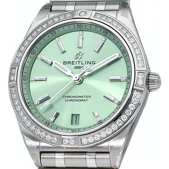 Breitling Chronomat Automatic 36 Diamonds Green Dial Two Tone Steel Strap Watch for Women - A10380591L1A1
