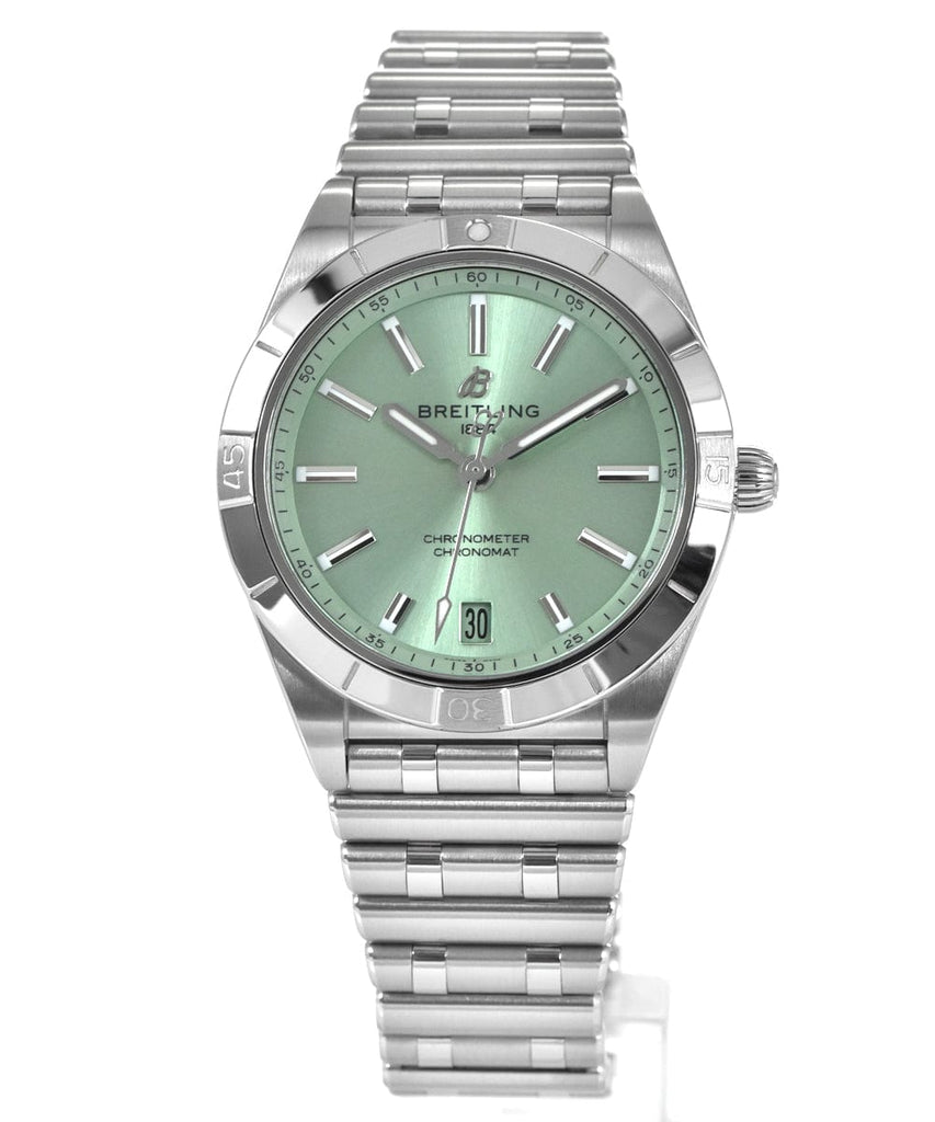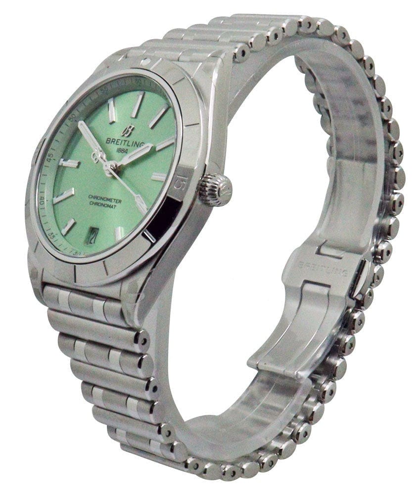 Breitling Chronomat Automatic 36 Green Dial Silver Steel Strap Watch for Women - A10380101L1A1