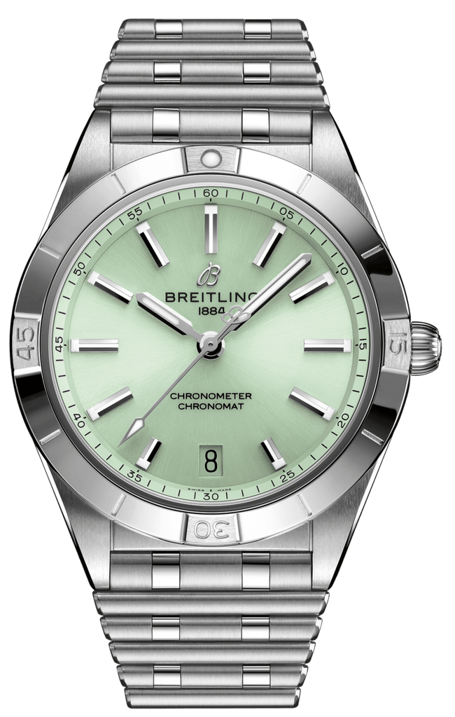 Stylish yet elegant, the modern-retro inspired Chronomat Automatic 36 is the versatile sporty and chic watch for any occasion. It is available in an array of metal cases, from cool stainless steel, to goes-with-everything bicolor, or even luxurious 18k red gold. Women craving extra sparkle will also be able to opt for diamond-set bezels, indices, and colorful dials. Featuring Breitling’s iconic and comfortable “Rouleaux” bracelet with a butterfly clasp, the Chronomat Automatic 36 is powered by the Breitling Caliber 10, a COSC-certified chronometer.