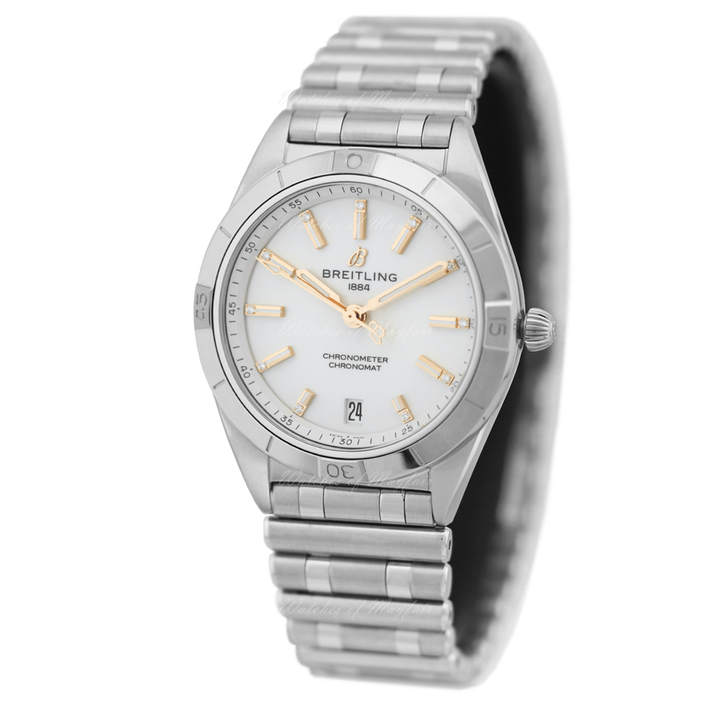 Breitling Chronomat Automatic 36 White Dial Silver Steel Strap Watch for Women - A10380101A2A1