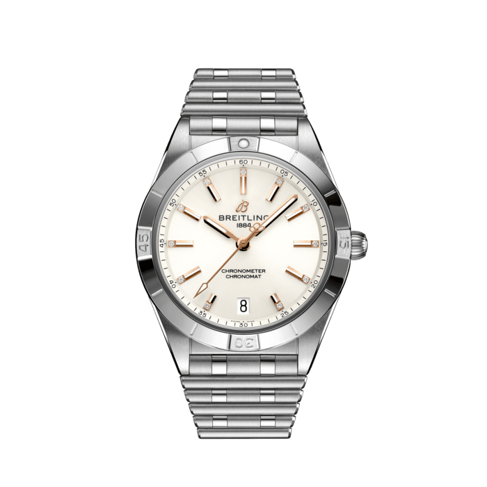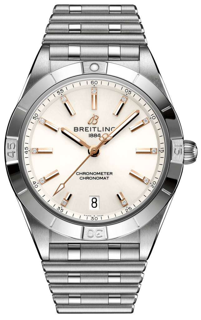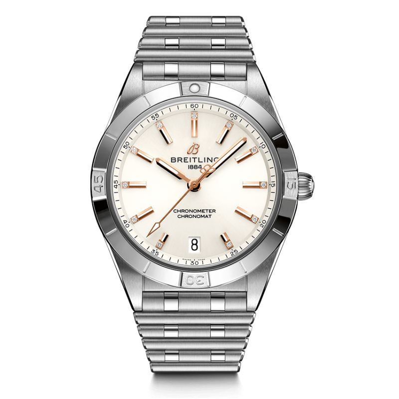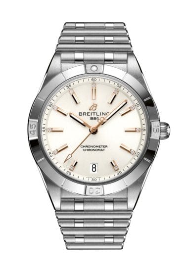 Stylish yet elegant, the modern-retro inspired Chronomat Automatic 36 is the versatile sporty and chic watch for any occasion. It is available in an array of metal cases, from cool stainless steel, to goes-with-everything bicolor, or even luxurious 18k red gold. Women craving extra sparkle will also be able to opt for diamond-set bezels, indices, and colorful dials. Featuring Breitling’s iconic and comfortable “Rouleaux” bracelet with a butterfly clasp, the Chronomat Automatic 36 is powered by the Breitling Caliber 10, a COSC-certified chronometer.