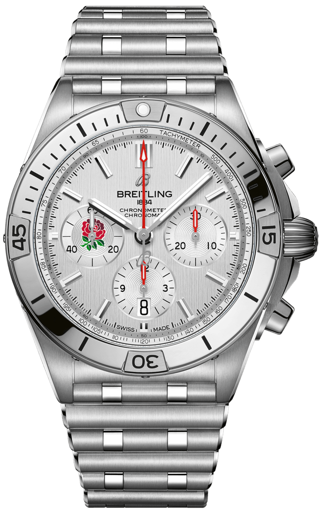 Breitling Chronomat B01 42 Six Nations England White Dial Silver Steel Strap Watch for Men - AB0134A71A1A1
