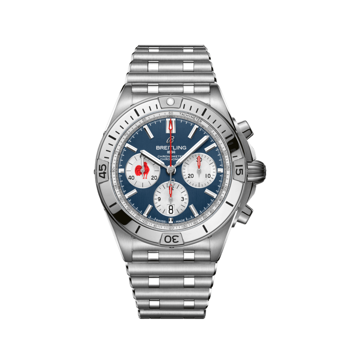 Breitling Chronomat B01 42 Six Nations France Blue Dial Silver Steel Strap Watch for Men - AB0134A81C1A1