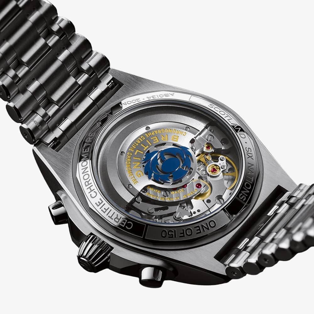 • Powered by the in-house Breitling Manufacture Calibre 01, a COSC-certified chronometer movement.