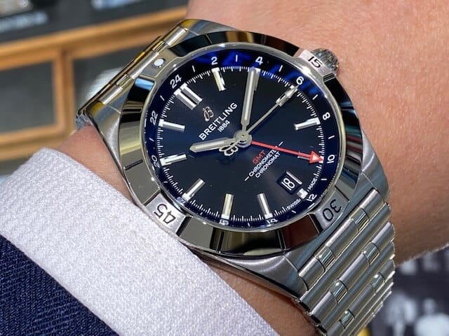 Known as “a watch for every pursuit,” the Chronomat mission is truer now than ever because of the GMT 40’s practical size and understated style. Sturdy enough for the gym, yet smart enough for black tie: If there’s one watch to travel with, this is it.