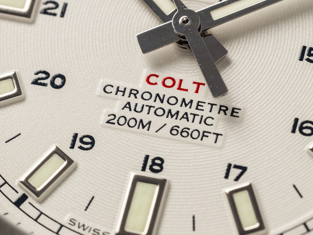 - Polished finished quarter hour markers with mate finished engraved numbers on the 15, 30 & 45 markers & a luminous dot at the 0 mark.