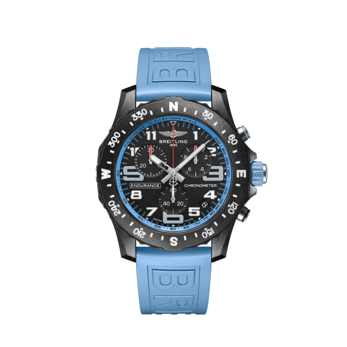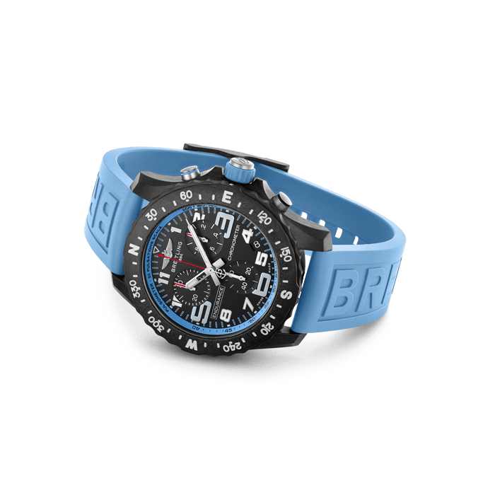 The Endurance Pro features an ultra-light Breitlight® case, a robust material 3.3 times lighter than titanium and 5.8 times lighter than stainless steel. Non-magnetic, thermally stable and hypoallergenic, Breitlight® is highly resistant to scratches, traction and corrosion. It also has a touch that is warmer than metal and a slightly textured effect accentuating the originality of the design. Exclusive to Breitling, it is 100% Swiss-made.