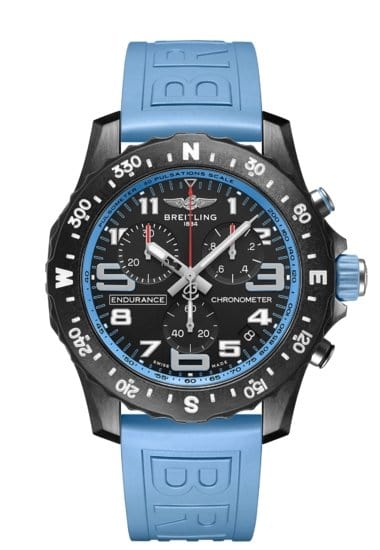 Offered with a set of colorful dial and rubber straps fitting a Breitlight® double tang-type buckle, the Endurance Pro can also be paired with one of Breitling’s colorful Outerknown ECONYL® yarn single-piece strap. Powering the Endurance Pro is Breitling’s Caliber 82, a COSC-certified SuperQuartz™ chronograph delivering exceptional precision.