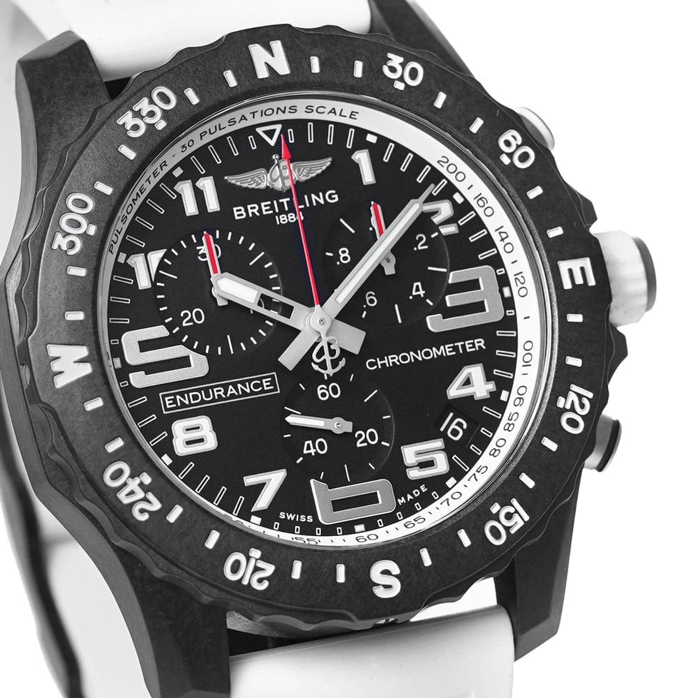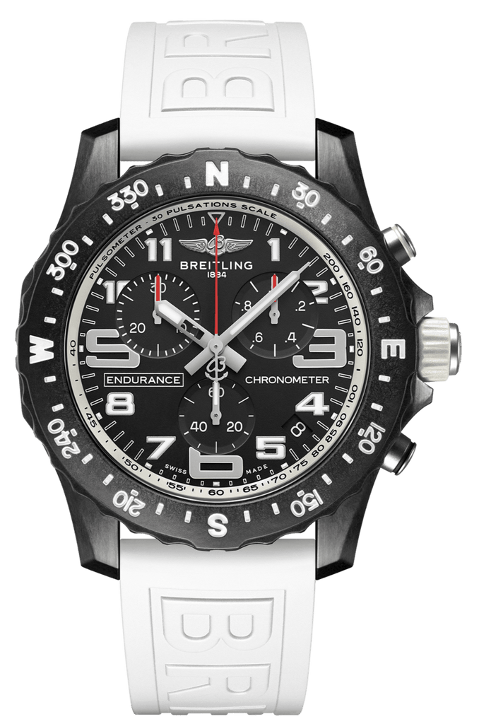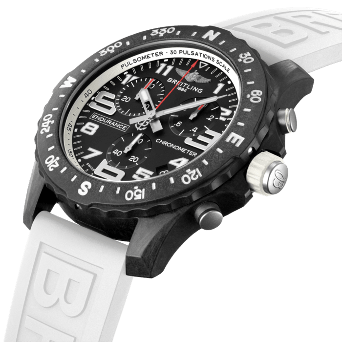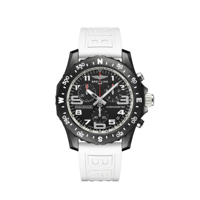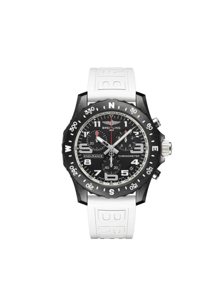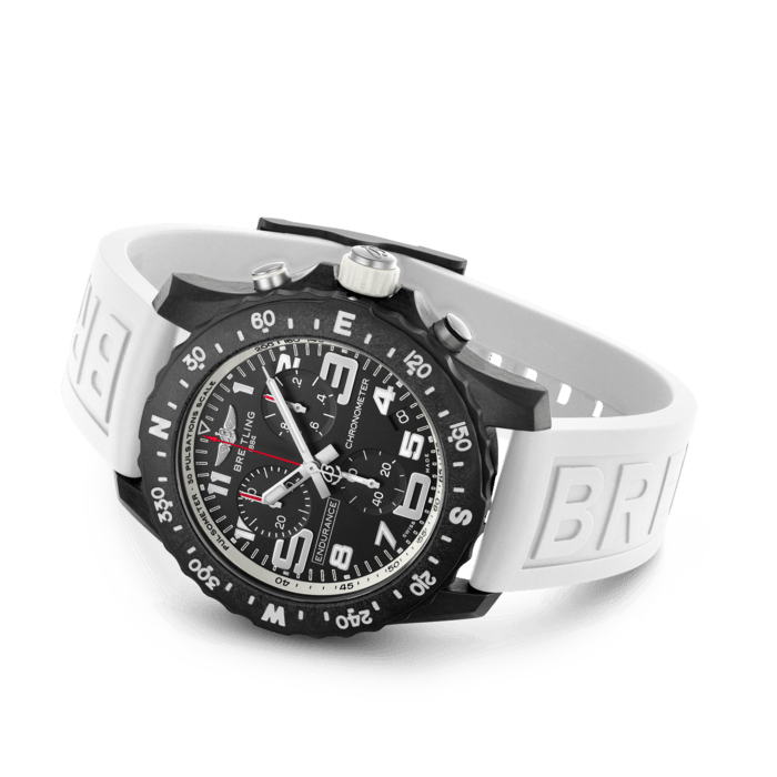 The Endurance Pro features an ultra-light Breitlight® case, a robust material 3.3 times lighter than titanium and 5.8 times lighter than stainless steel. Non-magnetic, thermally stable and hypoallergenic, Breitlight® is highly resistant to scratches, traction and corrosion. It also has a touch that is warmer than metal and a slightly textured effect accentuating the originality of the design. Exclusive to Breitling, it is 100% Swiss-made. Offered with a set of colorful dial and rubber straps fitting a Breitlight® double tang-type buckle, the Endurance Pro can also be paired with one of Breitling’s colorful Outerknown ECONYL® yarn single-piece strap. Powering the Endurance Pro is Breitling’s Caliber 82, a COSC-certified SuperQuartz™ chronograph delivering exceptional precision.