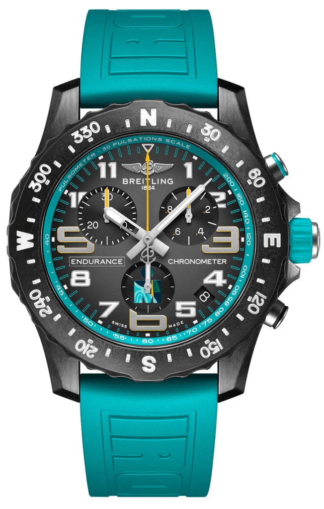 With its rubber strap and 100m water resistance, the Endurance Pro IRONMAN performs just as well in water as it does on land. And each one is powered by Breitling’s Caliber 82, a COSC-certified SuperQuartz™ movement that provides exceptional accuracy. Combine that with its easy readability, chronograph function and solar compass, and you have a powerful motivator for crossing the finish line.