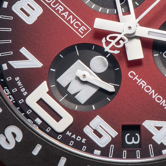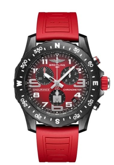 It also has a touch that is warmer than metal and a slightly textured effect accentuating the originality of the design. Exclusive to Breitling, it is 100% Swiss-made. Offered with a distinctive IRONMAN® red dial and branded rubber strap – fitting a Breitlight® double tang-type buckle, the Endurance Pro IRONMAN® is powered by the Breitling Caliber 82, a COSC-certified SuperQuartz™ chronograph delivering exceptional precision.