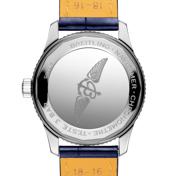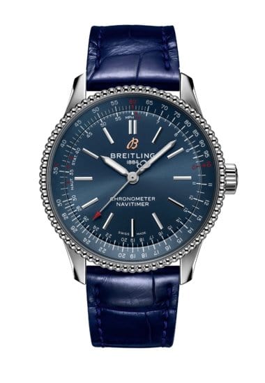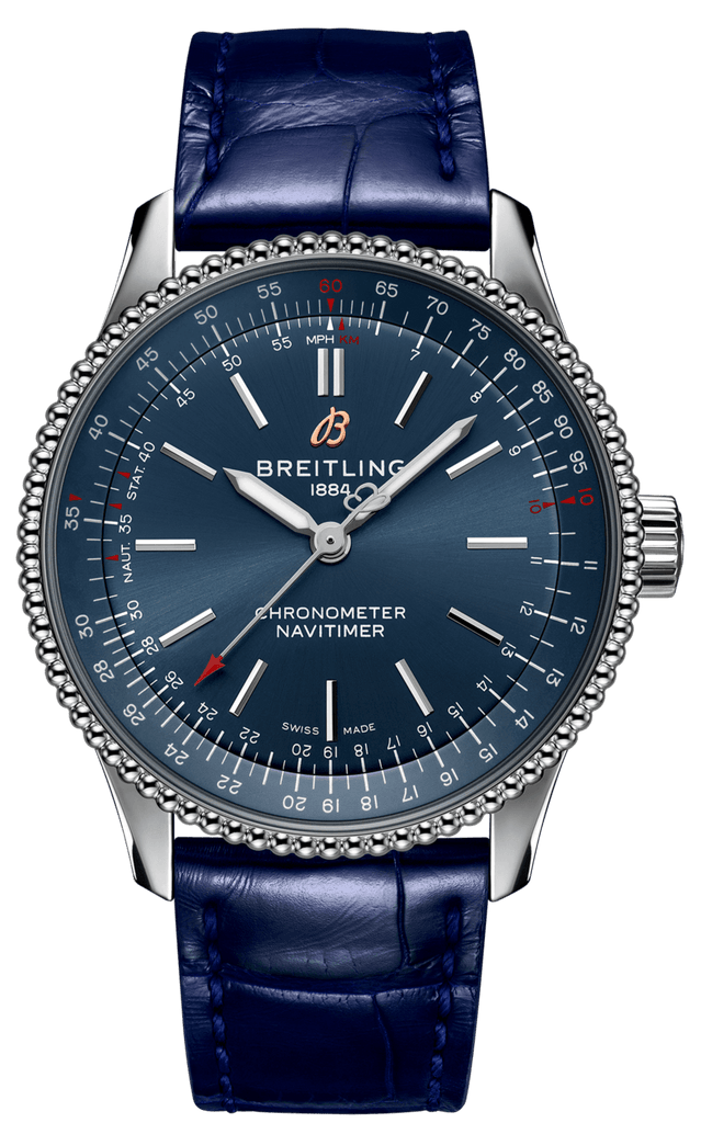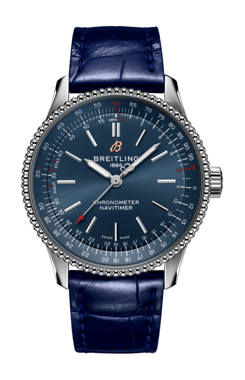 Refined and elegant, the Navitimer Automatic 35 combines the historic appeal of a true icon with the sophistication of a contemporary timepiece. Available in a variety of materials including stainless steel and 18k red gold, the 35 mm case features a beaded bezel and a range of elegant dial colors, as well as diamond-set white mother of pearl. Offered either with a matching bracelet or alligator strap that fits both a stainless steel pin or folding buckle, the Navitimer Automatic 35 is powered by the Breitling Caliber 17, a COSC-certified chronometer.