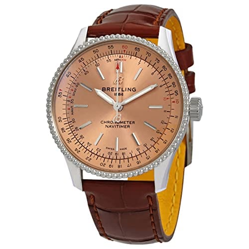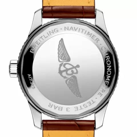 Refined and elegant, the Navitimer Automatic 35 combines the historic appeal of a true icon with the sophistication of a contemporary timepiece. Available in a variety of materials including stainless steel and 18k red gold, the 35 mm case features a beaded bezel and a range of elegant dial colors, as well as diamond-set white mother of pearl. Offered either with a matching bracelet or alligator strap that fits both a stainless steel pin or folding buckle, the Navitimer Automatic 35 is powered by the Breitling Caliber 17, a COSC-certified chronometer.
