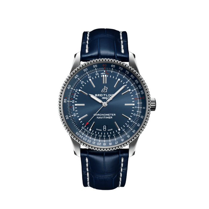 Refined and elegant, the Navitimer Automatic 41 combines the historic appeal of a true icon with the sophistication of a contemporary timepiece. Available in a variety of materials including stainless steel and 18k red gold, the 41 mm case features a beaded bezel and a range of elegant dial colors. Offered either with a matching bracelet or alligator strap that fits both a stainless-steel pin or folding buckle, the Navitimer Automatic 41 is powered by the Breitling Caliber 17, a COSC-certified chronometer.