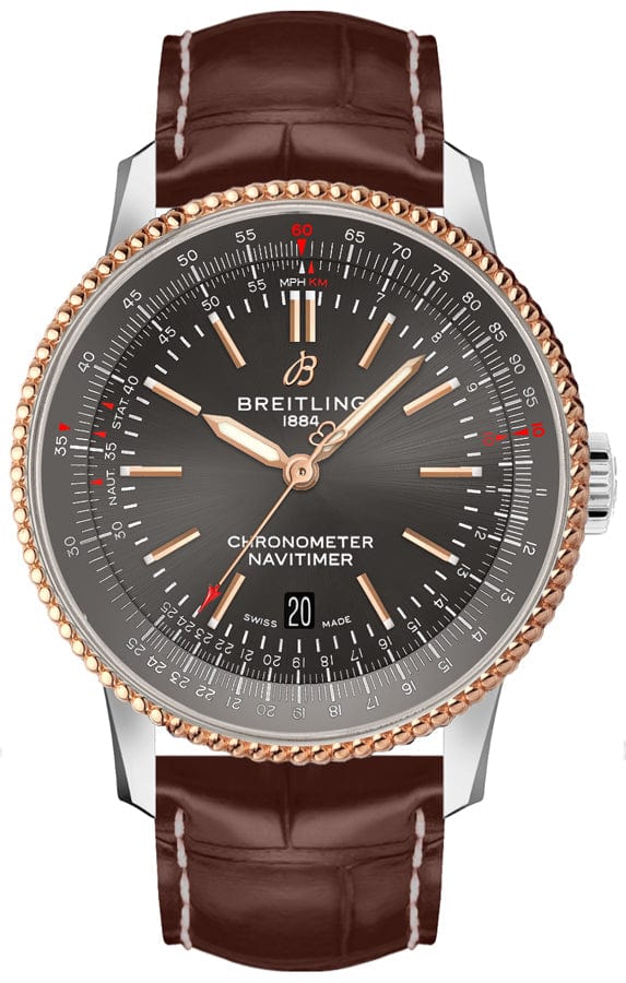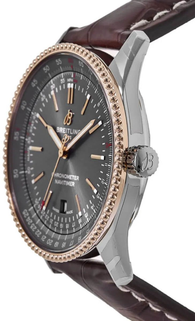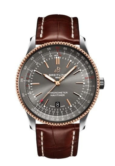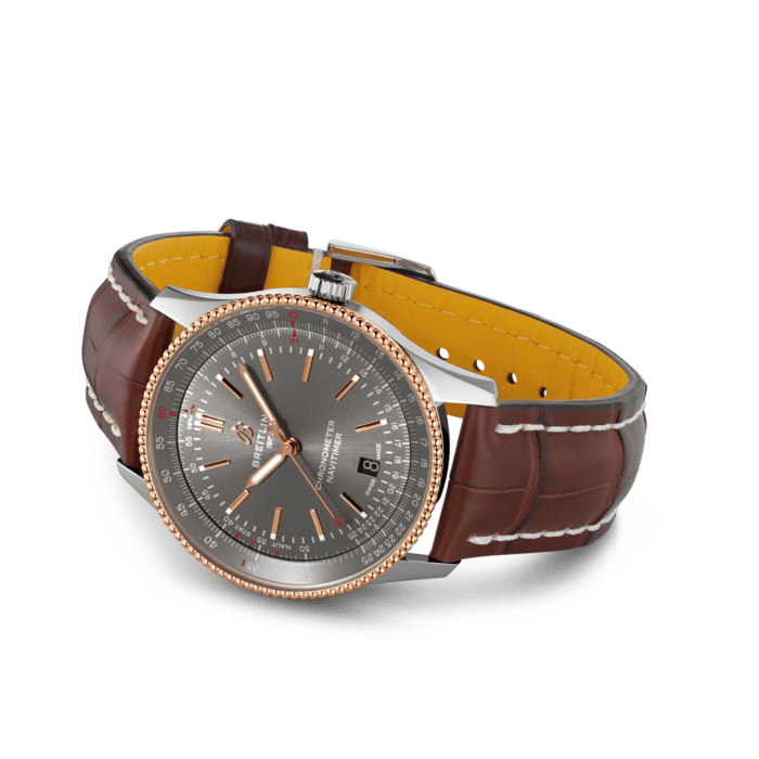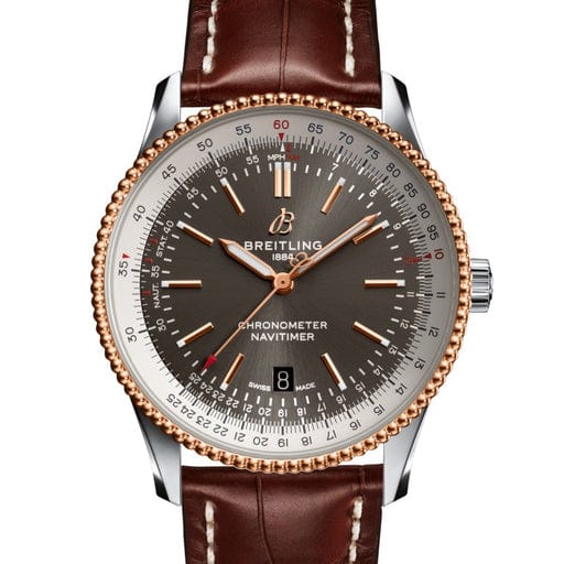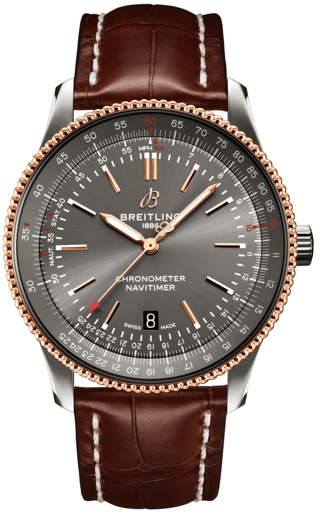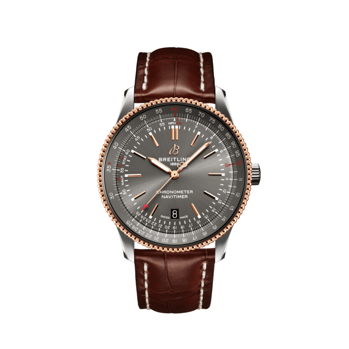 Breitling Navitimer Automatic 41 Steel & 18K Red Gold watch. Model reference: U17326121M1P1. Stainless steel & 18K red gold case. Grey dial. Automatic movement. Brown alligator leather strap with white stitching. Stainless steel pin buckle. Swiss made. The watch comes in the original packaging, with a set of documents and 2 years warranty.