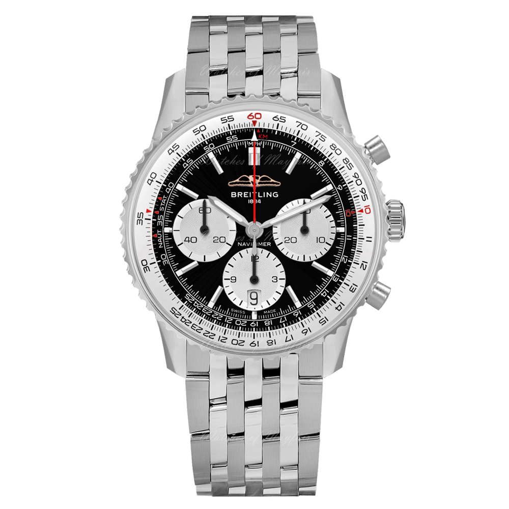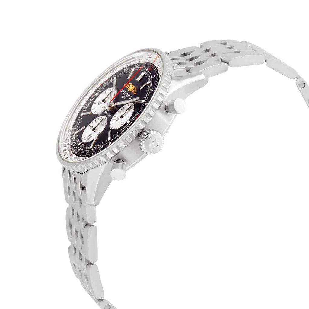 Breitling Navitimer B01 Chronograph 43 Black Dial Silver Steel Strap Watch for Men - AB0138211B1A1