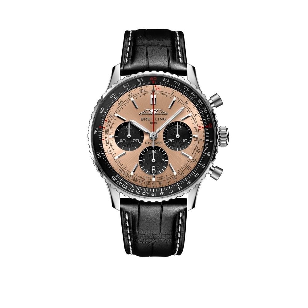A modern take on Breitling’s original beloved pilot’s watch, the Navitimer B01 Chronograph is a vision of classic excellence.