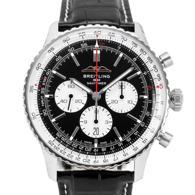 Breitling Navitimer B01 Chronograph 46 Black Dial Black Leather Strap Watch for Men - AB0137211B1P1