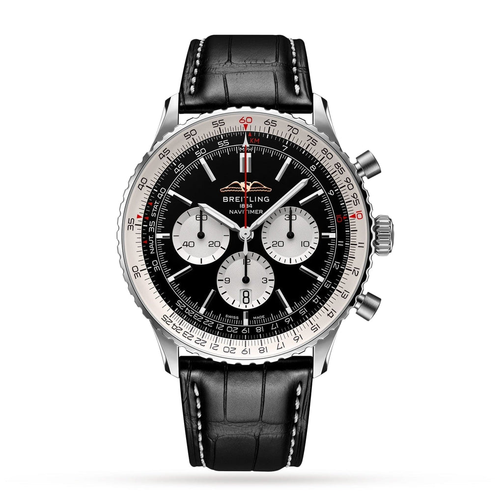 Buy Shop Breitling Navitimer B01 Chronograph 46 Black Dial Black Leather Strap Watch for Men - AB0137211B1P1 USA Online